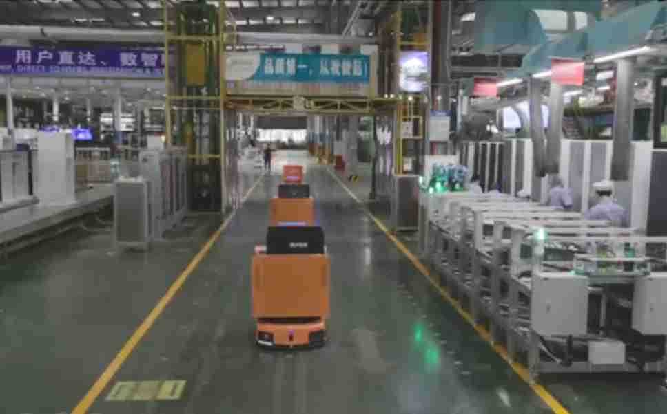 为车载冰箱物流配送打造的智能解决方案,,包含产中物流通过潜伏举升AMR搬运至线边,,产后成品物流智能仓储,,,,流程包含产中物流智能齐套入库,,线边安灯叫料AMR智能配送至线边,,,成品入库、、、、出库,,,,通过无人堆高车机器人,,,,智能仓储管理替代人工作业管理,,,实现更高存储、、更高效率、、、、更具柔性化的解决方案。。。。